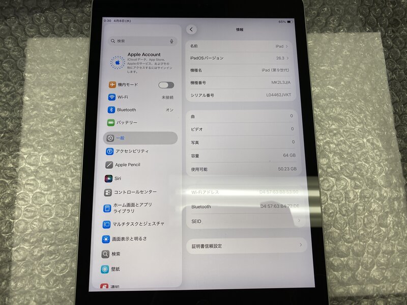 OB792 iPad 第9世代 Wi-Fiモデル A2602 シルバー 64GB