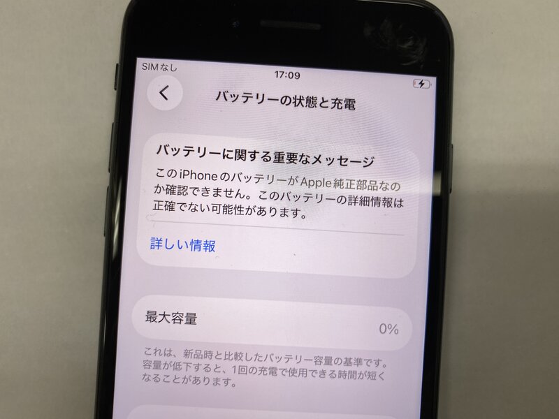 アクティベーションロック・・・OFF バッテリー交換品・充電が1%から貯まらない