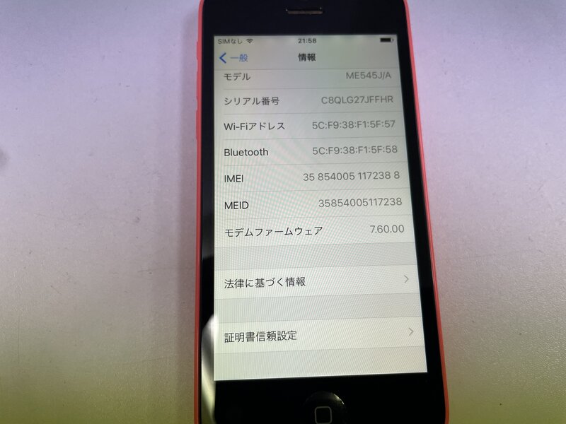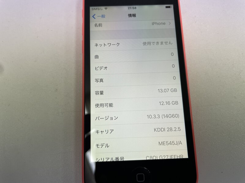 ML018 au iPhone5c 16GB ピンク 判定〇