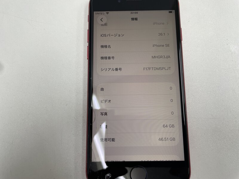 アクティベーションロック・・・OFF インカメラ不良・画面割れ・SIMトレイなし