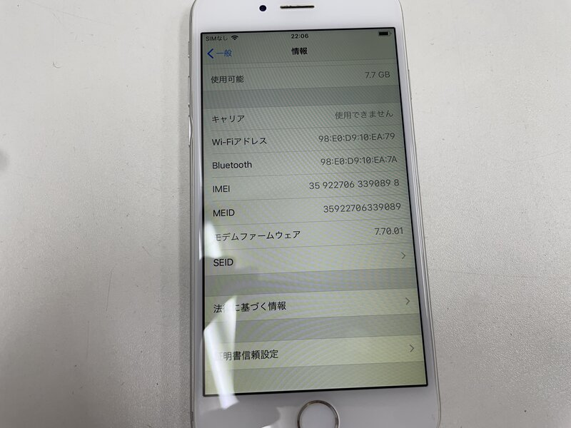 ML024 au iPhone6 16GB シルバー 判定〇
