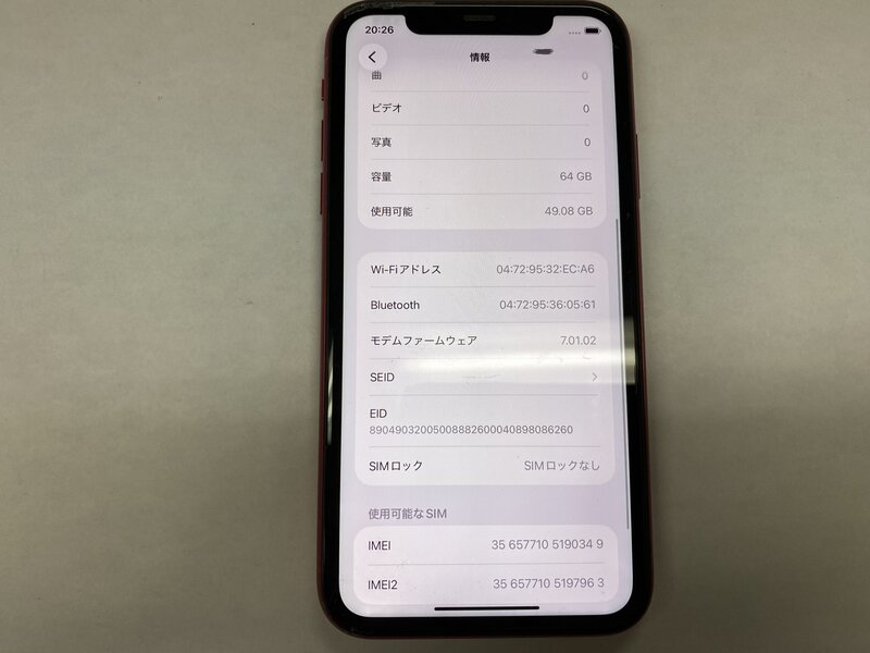 アクティベーションロック・・・OFF 画面割れ・バッテリー交換品・表示不良