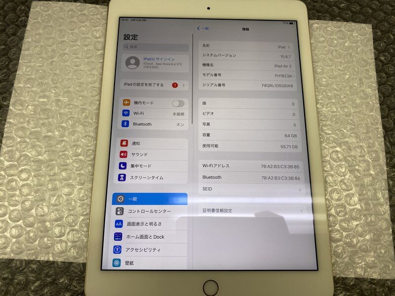 アクティベーションロック・・・OFF バッテリー劣化(バッテリー最大容量:50%)