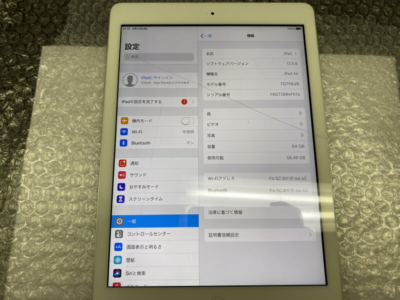 アクティベーションロック・・・OFF 画面割れ・バッテリー劣化(バッテリー最大容量:10%)