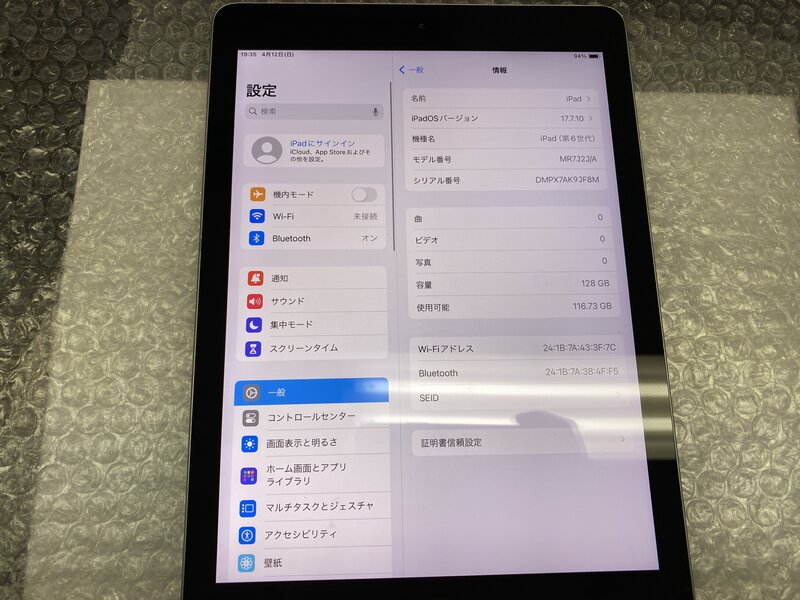 OC163 iPad 第6世代 Wi-Fiモデル A1893 スペースグレイ 128GB