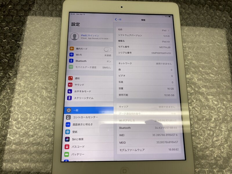 アクティベーションロック・・・OFF バッテリー劣化(バッテリー最大容量:8%)・液晶赤み・輝点