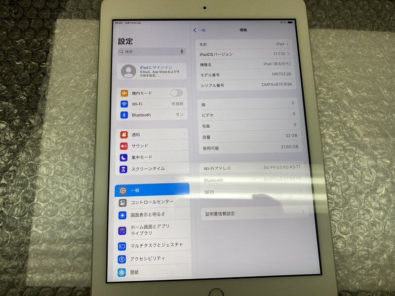 OC165 iPad 第6世代 Wi-Fiモデル A1893 シルバー 32GB
