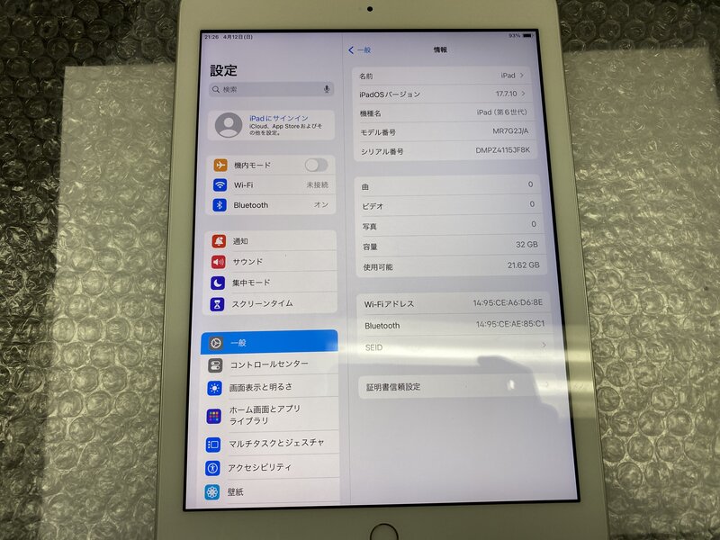 OC166 iPad 第6世代 Wi-Fiモデル A1893 シルバー 32GB