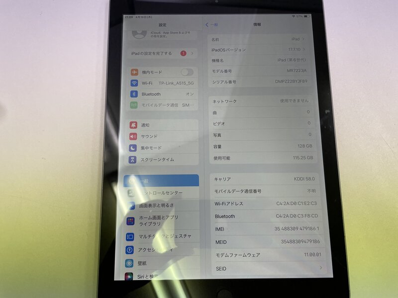 アクティベーションロック・・・OFF 液晶不良・液晶内汚れ・液晶焼け