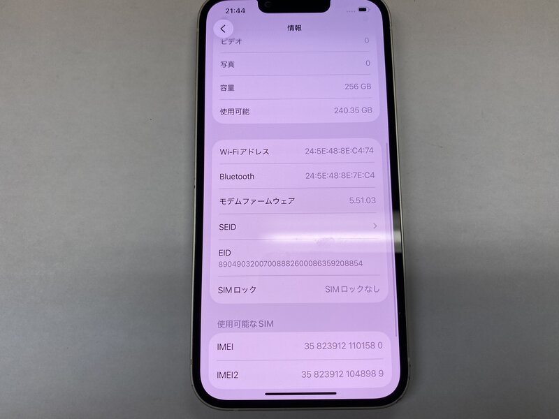 アクティベーションロック・・・OFF インカメラ曇り