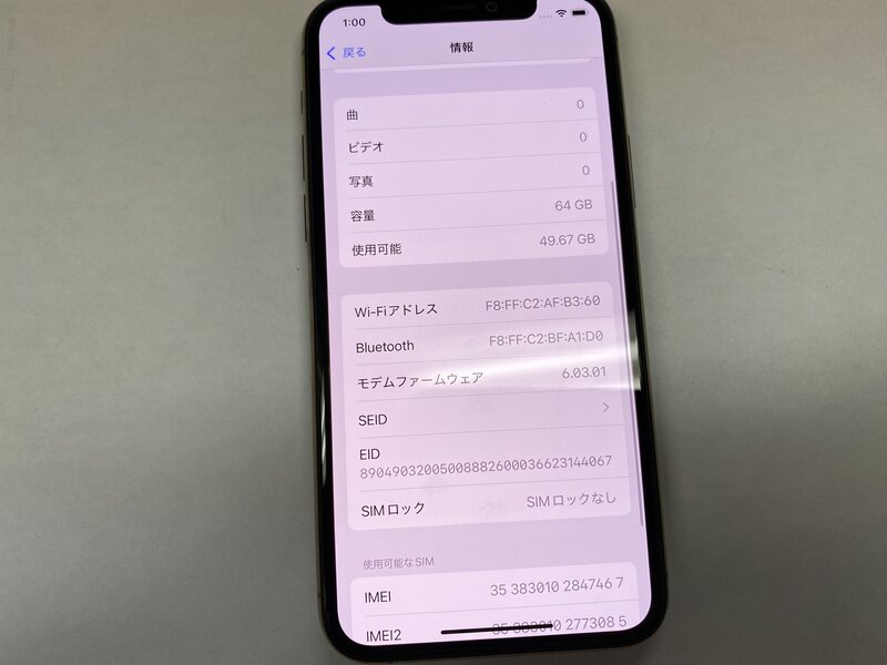 アクティベーションロック・・・OFF タッチ不可・FaceID不可