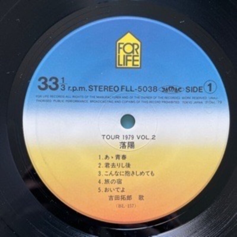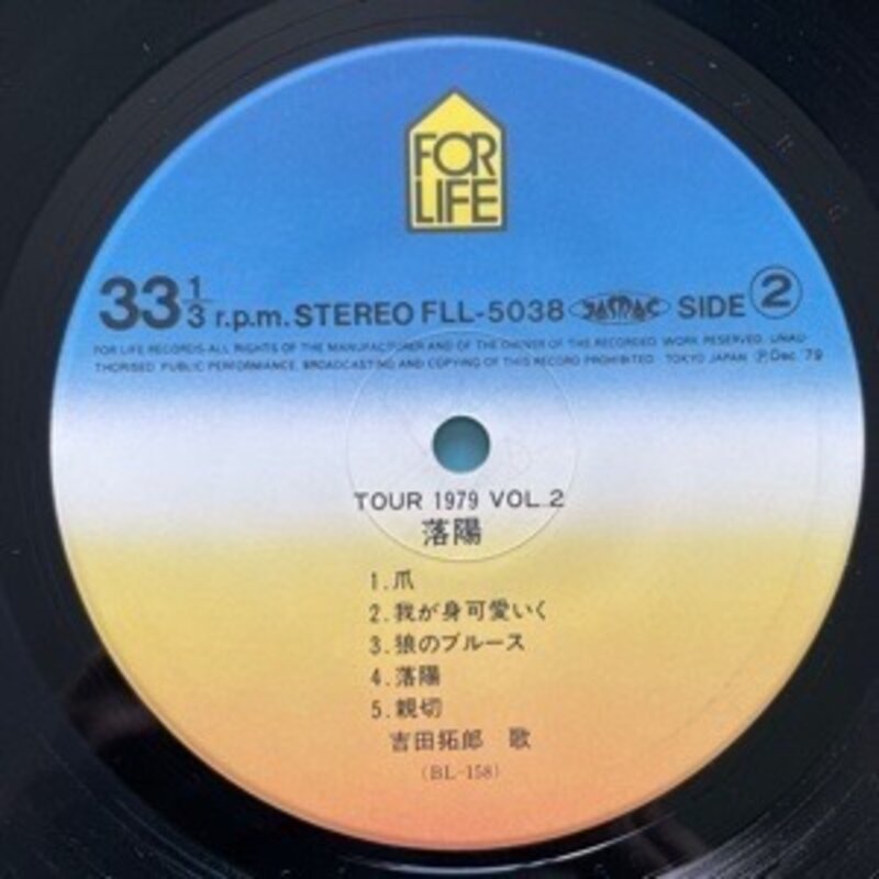 ☆美盤 よしだたくろう 吉田拓郎 / TOUR 1979 Vol.2 落陽 / For Life Records FLL-5038 帯付き【日本盤】 LP レコード アナログ盤