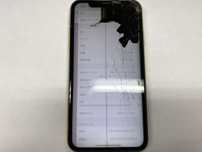 アクティベーションロック・・・OFF 画面割れ・背面割れ・表示不良・FaceID不可・インカメラ曇り