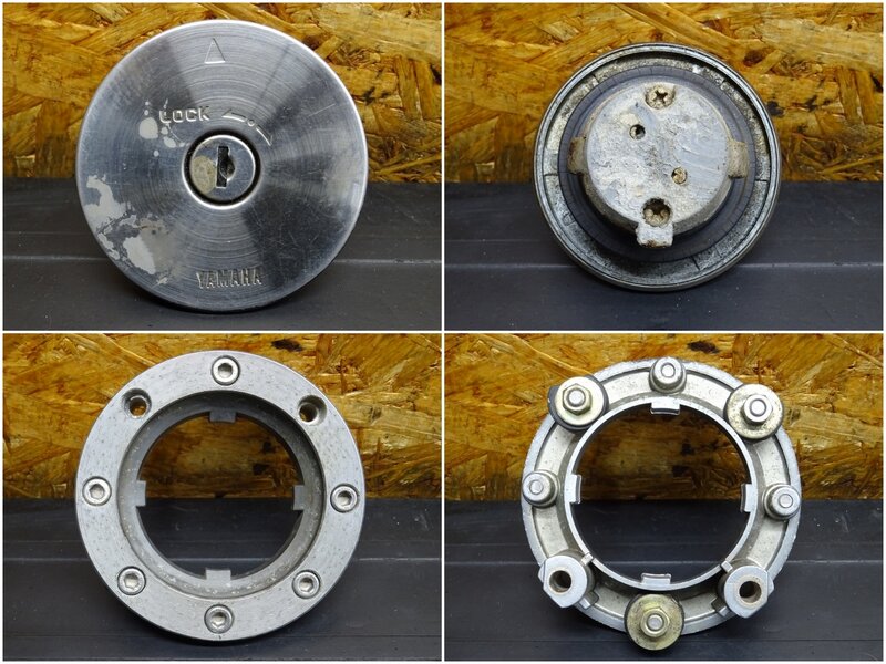 写真のセットです。イグニッションキー:純正キー1本。タンクキャップ・ヘルメットホルダー・シートロック:純正共通キー1本。
