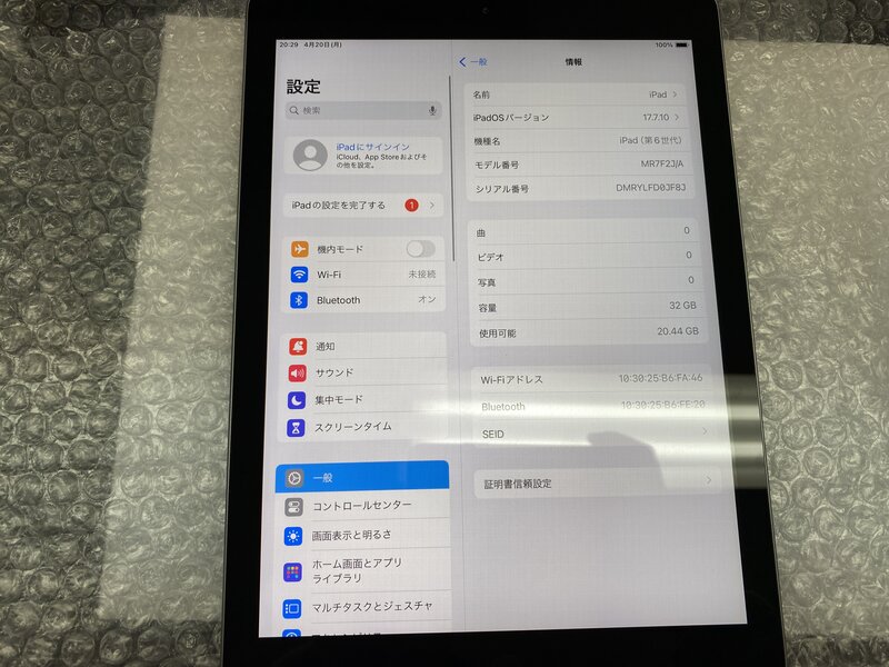 アクティベーションロック・・・OFF 液晶不良